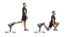 Bulgarian Lunge: Starting in a lunge position with your back leg elevated on a bench (or stair- whatever you have available) you start the exercise by bending the front leg until you glute is level with the bench. Then straightening the front leg again.