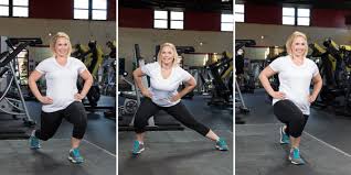 3-Point Lunge: Start with feet shoulder width apart. Step forward into a front lunge. With the same leg step back and into a side lunge, then immediately step back to the center and then into a reverse lunge. Come back to start position and repeat on the other side