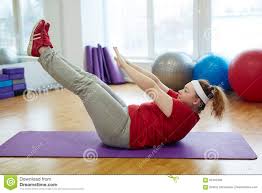 Toe Taps: Laying down on the floor with your knees bent and arms at your sides, you will lift both feet off the floor and extend your legs up. Fully extend your arms until your fingertips are pointing towards your toes. Do a crunch so that you are closing the distance between your toes and fingers, (trying to touch your fingertips to your toes). Slowly lower your torso and arms back to the starting position and keep your legs in the air