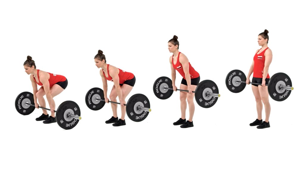 Dead Lifts: Stand with your legs shoulder width apart. Bend over and grab the bar at shoulder width. Drive through your legs to lift your chest up, straighten lower back, and stand up with the weight.