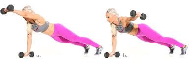 Plank Front/Side Raises: From a plank position, raise one arm forward holding a weight, lower the arm, raise it out to the side, then lower again